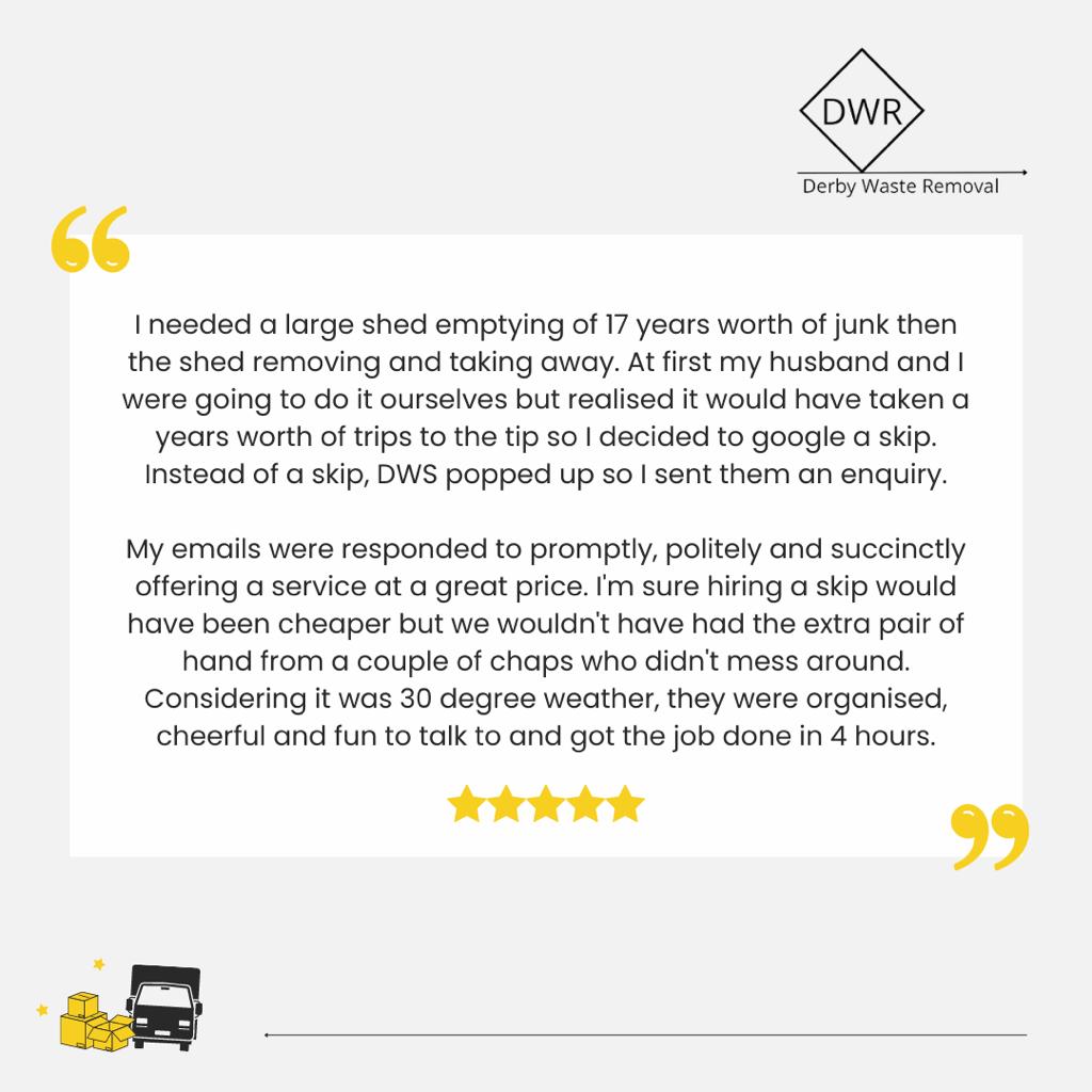 Have an old broken shed that you can't wait to see the back of? You're in luck! At Derby Waste Removal we will demolish your broken shed, clear away and responsibly dispose of the materials so that they're no longer an annoyance!
